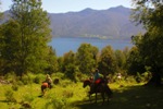 Huerquehue National Park is characterized by dense virgin forests, numerous creeks and rivers, pristine hidden lakes and natural hotsprings. Our rides lead on trails through the forests as well as on ridges with amazing views over the valleys and snowcovered ranges.